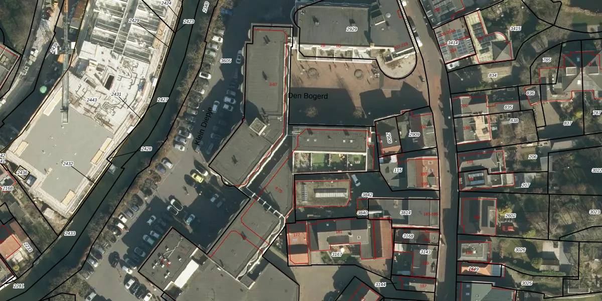 Het perceel waarop Den Bogerd 12 staat heeft een oppervlakte van 3770 m². Dit is een zeer groot perceel. De perceeloppervlakte wordt geregistreerd door het Kadaster. Gedetailleerde informatie over de maten van dit perceel kunt u vinden in het rapport Kadastrale kaart met maatvoering van Den Bogerd 12.