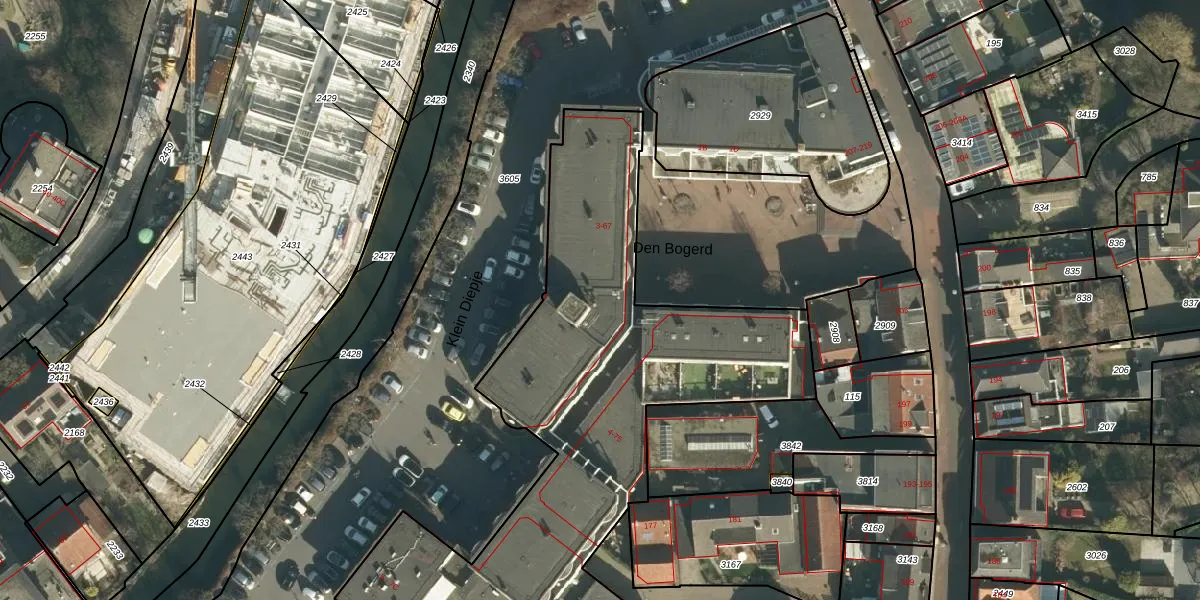 Het perceel waarop Den Bogerd 29 staat heeft een oppervlakte van 3770 m². Dit is een zeer groot perceel. De perceeloppervlakte wordt geregistreerd door het Kadaster. Gedetailleerde informatie over de maten van dit perceel kunt u vinden in het rapport Kadastrale kaart met maatvoering van Den Bogerd 29.