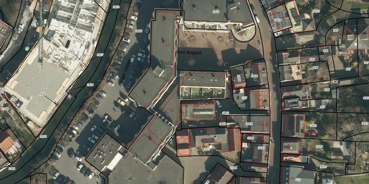 Het perceel waarop Den Bogerd 45 staat heeft een oppervlakte van 3770 m². Dit is een zeer groot perceel. De perceeloppervlakte wordt geregistreerd door het Kadaster. Gedetailleerde informatie over de maten van dit perceel kunt u vinden in het rapport Kadastrale kaart met maatvoering van Den Bogerd 45.