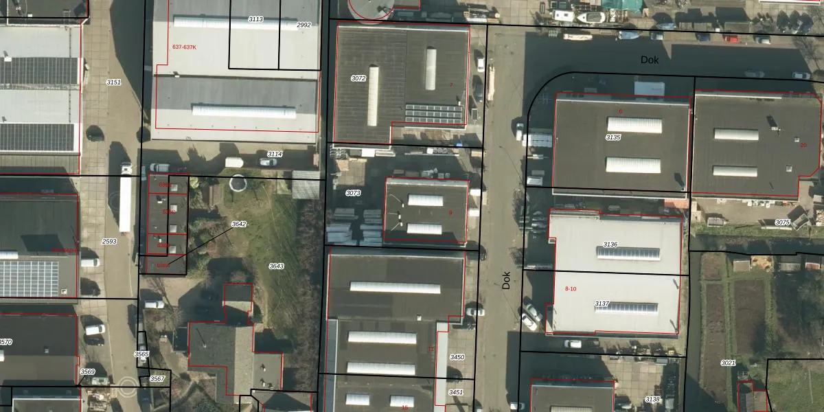 Het perceel waarop Dok 9 staat heeft een oppervlakte van 956 m². Dit is een groot perceel. De perceeloppervlakte wordt geregistreerd door het Kadaster. Gedetailleerde informatie over de maten van dit perceel kunt u vinden in het rapport Kadastrale kaart met maatvoering van Dok 9.