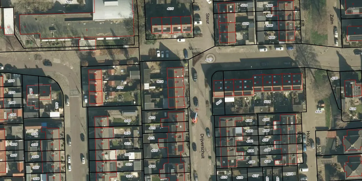 Het perceel waarop Drijverschuit 32 staat heeft een oppervlakte van 722 m². Dit is een groot perceel. De perceeloppervlakte wordt geregistreerd door het Kadaster. Gedetailleerde informatie over de maten van dit perceel kunt u vinden in het rapport Kadastrale kaart met maatvoering van Drijverschuit 32.