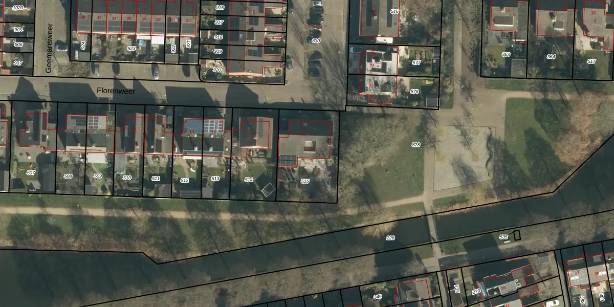 Gebruik de zoekbalk of klik op een perceel voor informatie over de adressen binnen dit perceel.