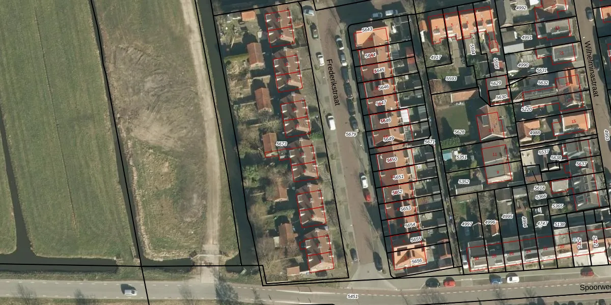 Het perceel waarop Frederikstraat 11 staat heeft een oppervlakte van 2606 m². Dit is een zeer groot perceel. De perceeloppervlakte wordt geregistreerd door het Kadaster. Gedetailleerde informatie over de maten van dit perceel kunt u vinden in het rapport Kadastrale kaart met maatvoering van Frederikstraat 11.