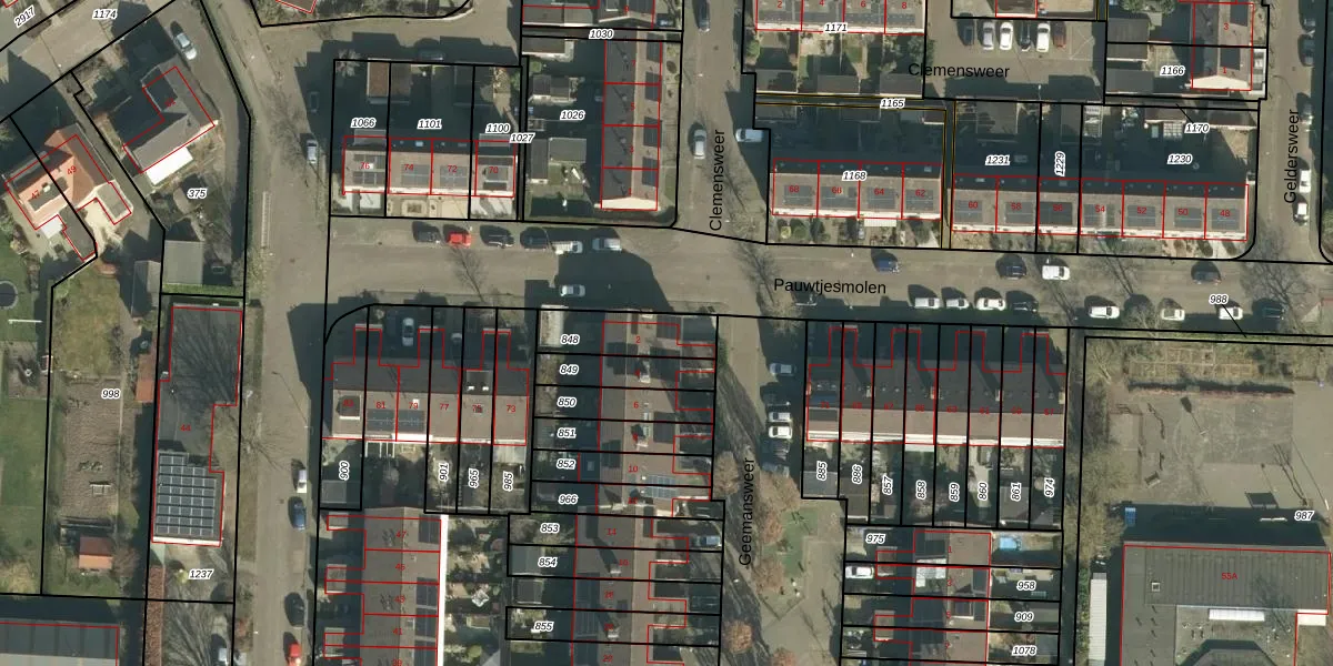 Gebruik de zoekbalk of klik op een perceel voor informatie over de adressen binnen dit perceel.