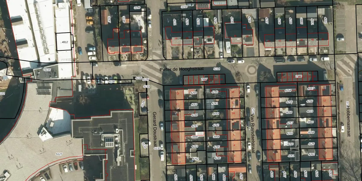Gebruik de zoekbalk of klik op een perceel voor informatie over de adressen binnen dit perceel.