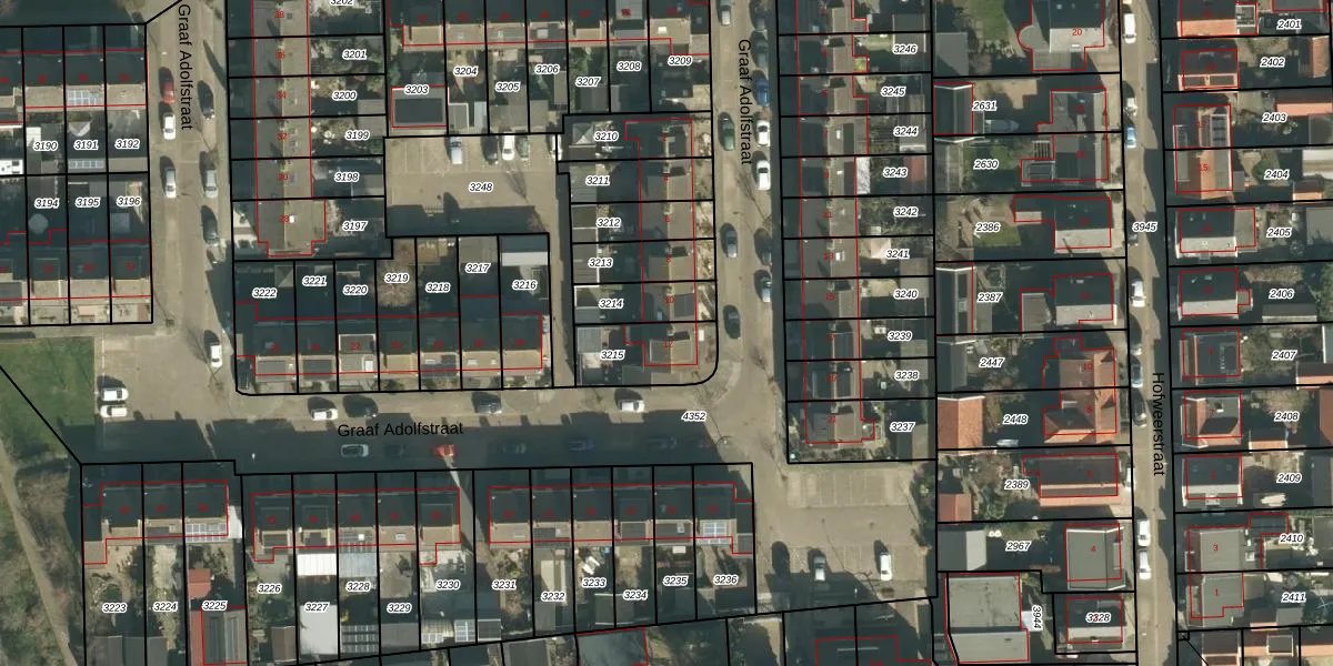 Het perceel waarop Graaf Adolfstraat 12 staat heeft een oppervlakte van 193 m². Dit is een middelgroot perceel. De perceeloppervlakte wordt geregistreerd door het Kadaster. Gedetailleerde informatie over de maten van dit perceel kunt u vinden in het rapport Kadastrale kaart met maatvoering van Graaf Adolfstraat 12.