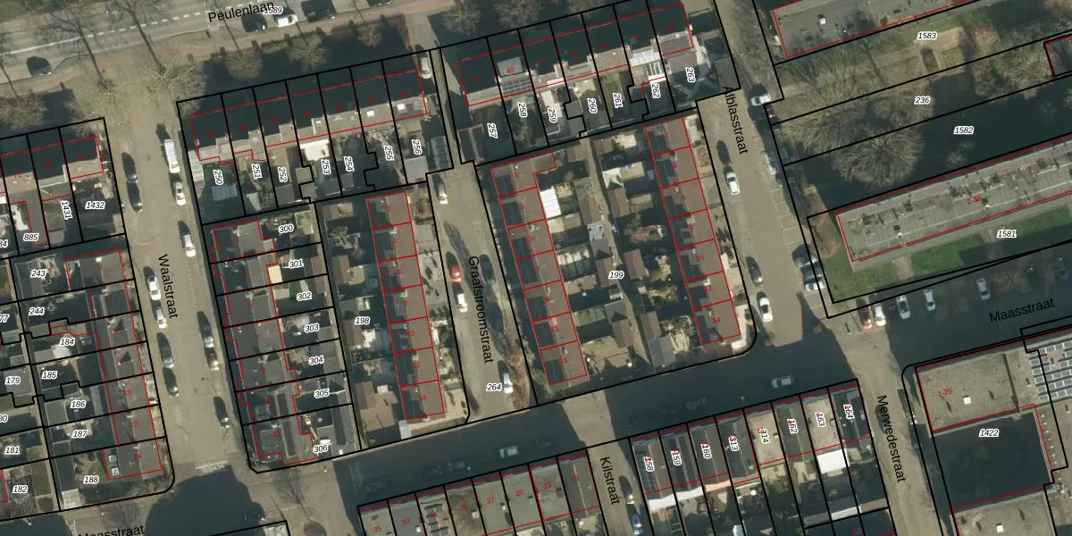 Het perceel waarop Graafstroomstraat 7 staat heeft een oppervlakte van 1989 m². Dit is een zeer groot perceel. De perceeloppervlakte wordt geregistreerd door het Kadaster. Gedetailleerde informatie over de maten van dit perceel kunt u vinden in het rapport Kadastrale kaart met maatvoering van Graafstroomstraat 7.