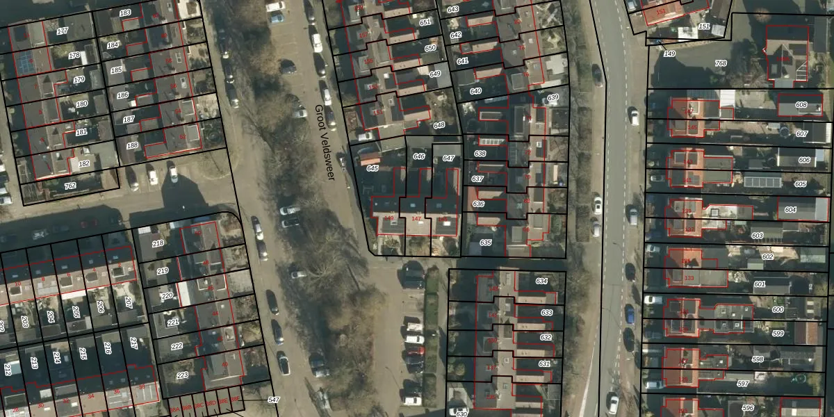 Groot Veldsweer 147 is gelegen op kadastraal perceel HDV00H646. Deze kadastrale aanduiding is uniek en wordt gebruikt door het Kadaster om eigendomsrechten en andere zakelijke rechten vast te leggen. Het perceel maakt onderdeel uit van de kadastrale gemeente Hardinxveld-Giessendam.