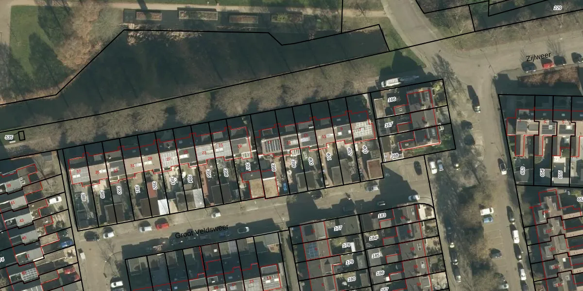 Het perceel waarop Groot Veldsweer 15 staat heeft een oppervlakte van 184 m². Dit is een middelgroot perceel. De perceeloppervlakte wordt geregistreerd door het Kadaster. Gedetailleerde informatie over de maten van dit perceel kunt u vinden in het rapport Kadastrale kaart met maatvoering van Groot Veldsweer 15.