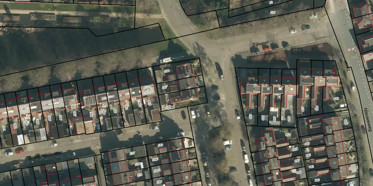 Gebruik de zoekbalk of klik op een perceel voor informatie over de adressen binnen dit perceel.
