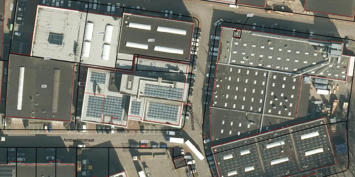 Het perceel waarop Handelsstraat 4 staat heeft een oppervlakte van 2143 m². Dit is een zeer groot perceel. De perceeloppervlakte wordt geregistreerd door het Kadaster. Gedetailleerde informatie over de maten van dit perceel kunt u vinden in het rapport Kadastrale kaart met maatvoering van Handelsstraat 4.