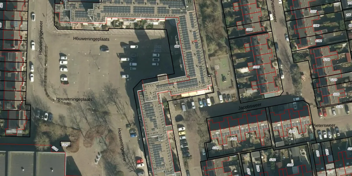 Het perceel waarop Jacobsweer 156 staat heeft een oppervlakte van 3373 m². Dit is een zeer groot perceel. De perceeloppervlakte wordt geregistreerd door het Kadaster. Gedetailleerde informatie over de maten van dit perceel kunt u vinden in het rapport Kadastrale kaart met maatvoering van Jacobsweer 156.