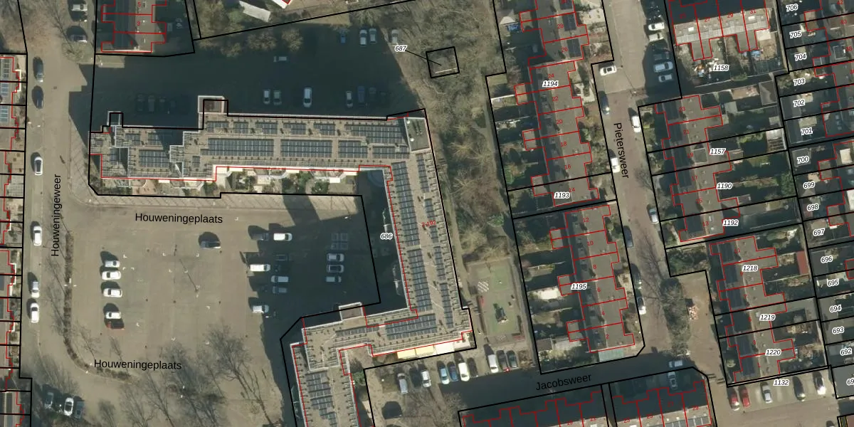 Jacobsweer 16 is gelegen op kadastraal perceel HDV00H686. Deze kadastrale aanduiding is uniek en wordt gebruikt door het Kadaster om eigendomsrechten en andere zakelijke rechten vast te leggen. Het perceel maakt onderdeel uit van de kadastrale gemeente Hardinxveld-Giessendam.