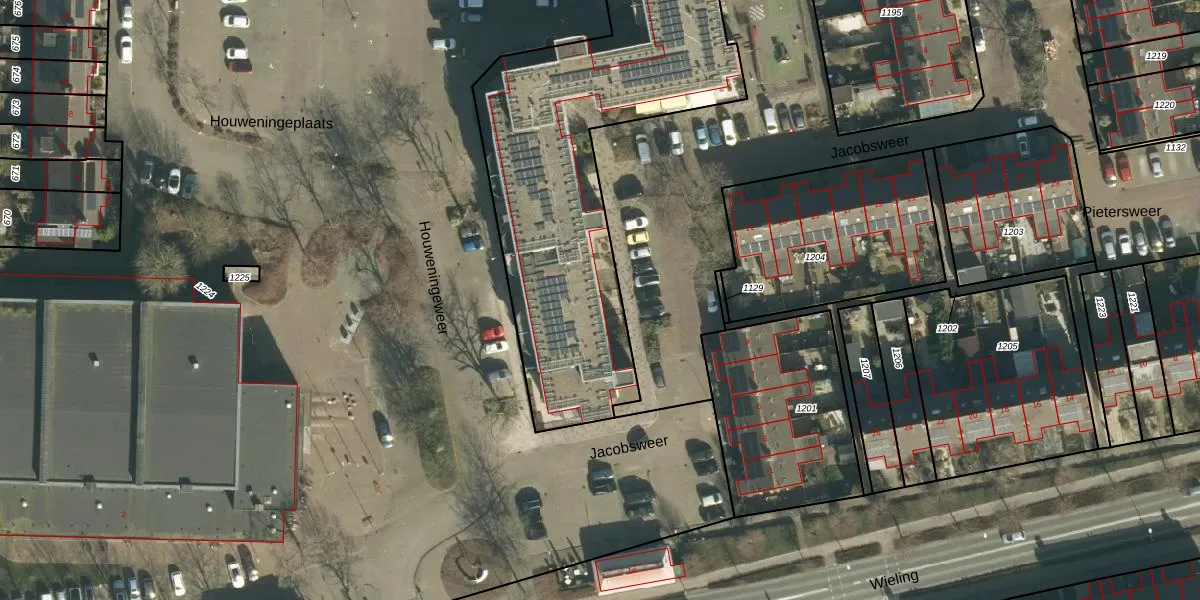 Het perceel waarop Jacobsweer 82 staat heeft een oppervlakte van 3373 m². Dit is een zeer groot perceel. De perceeloppervlakte wordt geregistreerd door het Kadaster. Gedetailleerde informatie over de maten van dit perceel kunt u vinden in het rapport Kadastrale kaart met maatvoering van Jacobsweer 82.