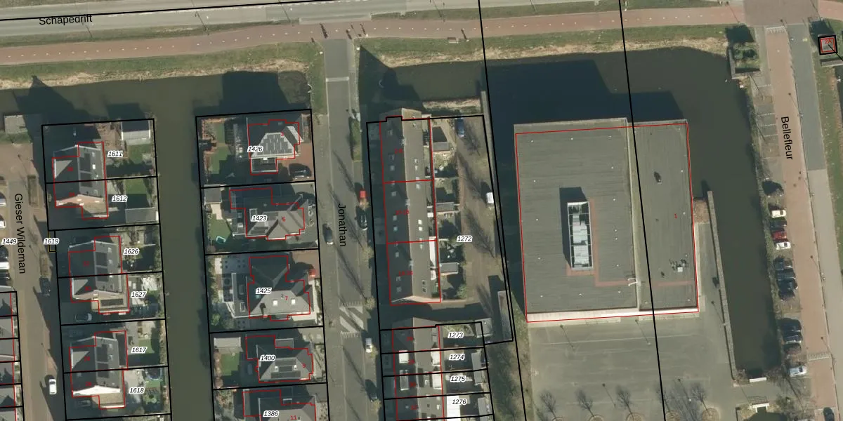 Het perceel waarop Jonathan 12 staat heeft een oppervlakte van 1487 m². Dit is een zeer groot perceel. De perceeloppervlakte wordt geregistreerd door het Kadaster. Gedetailleerde informatie over de maten van dit perceel kunt u vinden in het rapport Kadastrale kaart met maatvoering van Jonathan 12.