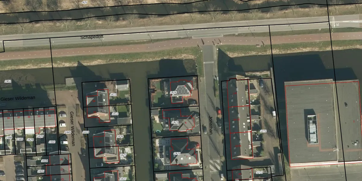 Het perceel waarop Jonathan 3 staat heeft een oppervlakte van 464 m². Dit is een groot perceel. De perceeloppervlakte wordt geregistreerd door het Kadaster. Gedetailleerde informatie over de maten van dit perceel kunt u vinden in het rapport Kadastrale kaart met maatvoering van Jonathan 3.
