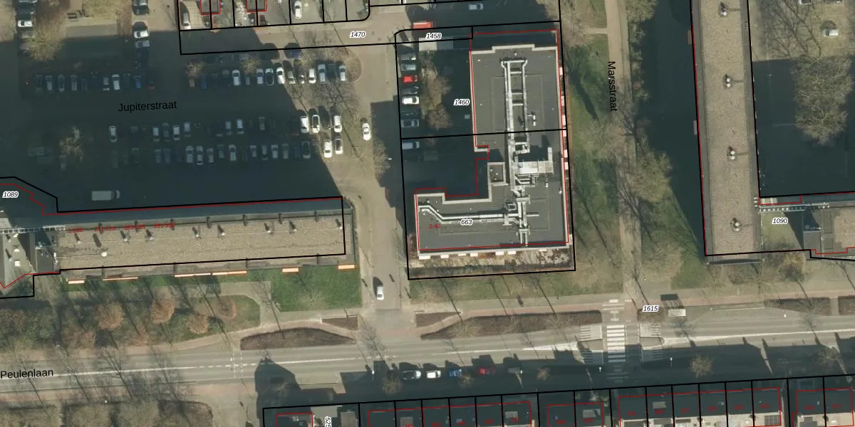 Het perceel waarop Jupiterstraat 20 staat heeft een oppervlakte van 1287 m². Dit is een zeer groot perceel. De perceeloppervlakte wordt geregistreerd door het Kadaster. Gedetailleerde informatie over de maten van dit perceel kunt u vinden in het rapport Kadastrale kaart met maatvoering van Jupiterstraat 20.