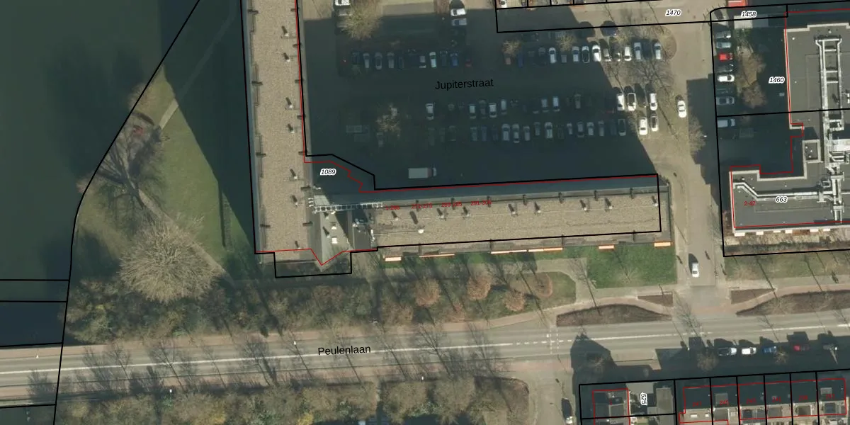 Het perceel waarop Jupiterstraat 31 staat heeft een oppervlakte van 2231 m². Dit is een zeer groot perceel. De perceeloppervlakte wordt geregistreerd door het Kadaster. Gedetailleerde informatie over de maten van dit perceel kunt u vinden in het rapport Kadastrale kaart met maatvoering van Jupiterstraat 31.