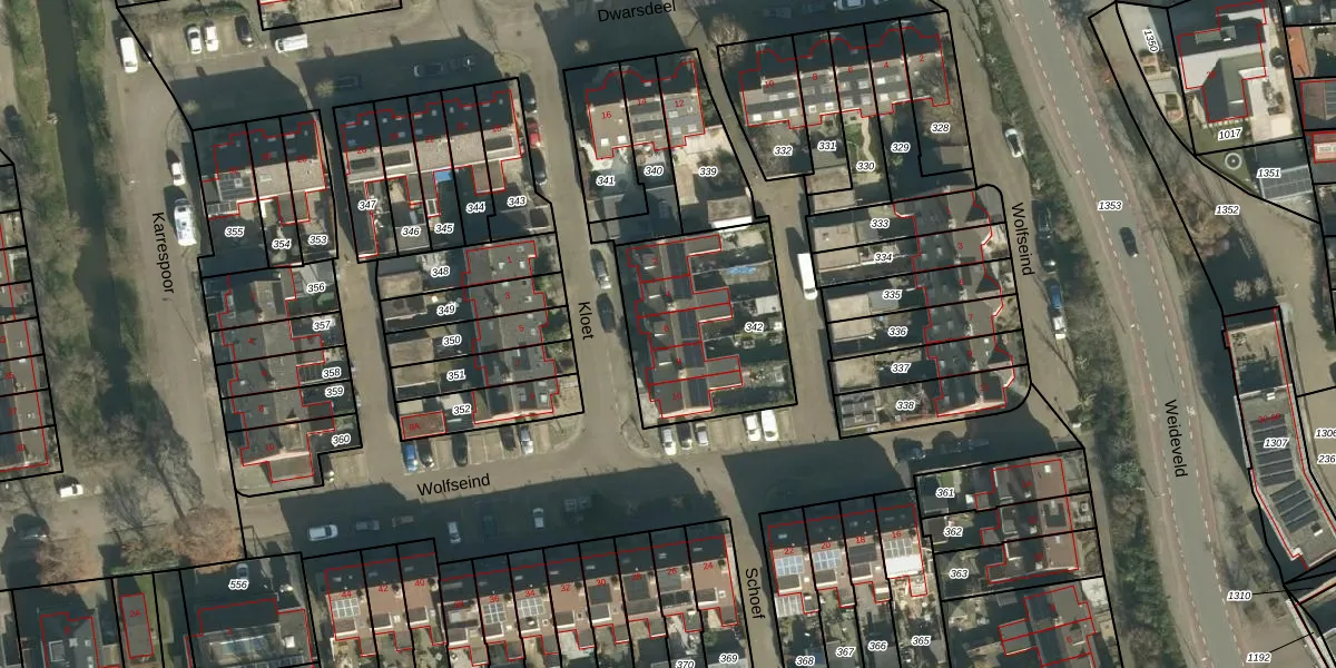 Het perceel waarop Kloet 6 staat heeft een oppervlakte van 645 m². Dit is een groot perceel. De perceeloppervlakte wordt geregistreerd door het Kadaster. Gedetailleerde informatie over de maten van dit perceel kunt u vinden in het rapport Kadastrale kaart met maatvoering van Kloet 6.