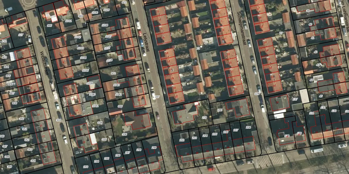 Het perceel waarop Lelystraat 18 staat heeft een oppervlakte van 3025 m². Dit is een zeer groot perceel. De perceeloppervlakte wordt geregistreerd door het Kadaster. Gedetailleerde informatie over de maten van dit perceel kunt u vinden in het rapport Kadastrale kaart met maatvoering van Lelystraat 18.