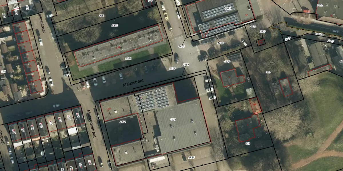 Het perceel waarop Maasstraat 1 staat heeft een oppervlakte van 1515 m². Dit is een zeer groot perceel. De perceeloppervlakte wordt geregistreerd door het Kadaster. Gedetailleerde informatie over de maten van dit perceel kunt u vinden in het rapport Kadastrale kaart met maatvoering van Maasstraat 1.