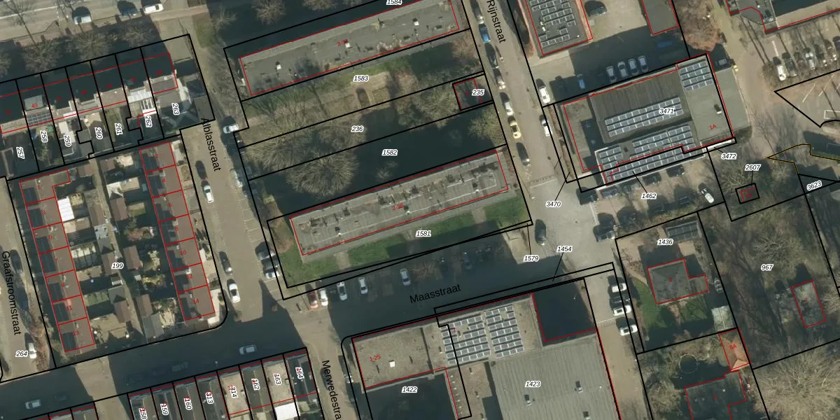 Het perceel waarop Maasstraat 18 staat heeft een oppervlakte van 1093 m². Dit is een zeer groot perceel. De perceeloppervlakte wordt geregistreerd door het Kadaster. Gedetailleerde informatie over de maten van dit perceel kunt u vinden in het rapport Kadastrale kaart met maatvoering van Maasstraat 18.