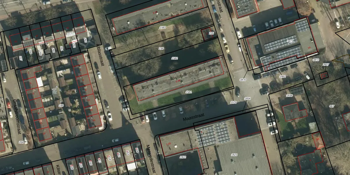 Het perceel waarop Maasstraat 24 staat heeft een oppervlakte van 1093 m². Dit is een zeer groot perceel. De perceeloppervlakte wordt geregistreerd door het Kadaster. Gedetailleerde informatie over de maten van dit perceel kunt u vinden in het rapport Kadastrale kaart met maatvoering van Maasstraat 24.