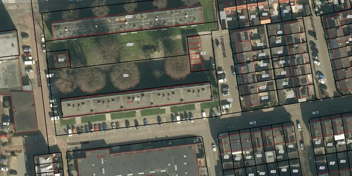 Het perceel waarop Maasstraat 54 staat heeft een oppervlakte van 915 m². Dit is een groot perceel. De perceeloppervlakte wordt geregistreerd door het Kadaster. Gedetailleerde informatie over de maten van dit perceel kunt u vinden in het rapport Kadastrale kaart met maatvoering van Maasstraat 54.