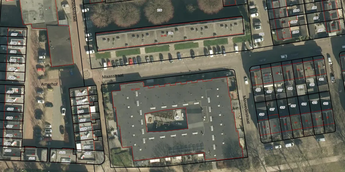 Het perceel waarop Maasstraat 71 staat heeft een oppervlakte van 4015 m². Dit is een zeer groot perceel. De perceeloppervlakte wordt geregistreerd door het Kadaster. Gedetailleerde informatie over de maten van dit perceel kunt u vinden in het rapport Kadastrale kaart met maatvoering van Maasstraat 71.