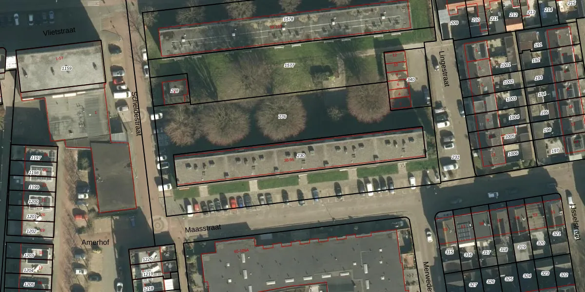 Het perceel waarop Maasstraat 72 staat heeft een oppervlakte van 915 m². Dit is een groot perceel. De perceeloppervlakte wordt geregistreerd door het Kadaster. Gedetailleerde informatie over de maten van dit perceel kunt u vinden in het rapport Kadastrale kaart met maatvoering van Maasstraat 72.
