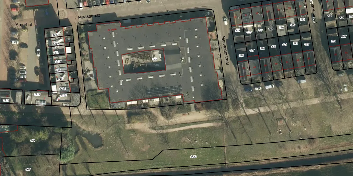 Het perceel waarop Maasstraat 99 staat heeft een oppervlakte van 4015 m². Dit is een zeer groot perceel. De perceeloppervlakte wordt geregistreerd door het Kadaster. Gedetailleerde informatie over de maten van dit perceel kunt u vinden in het rapport Kadastrale kaart met maatvoering van Maasstraat 99.