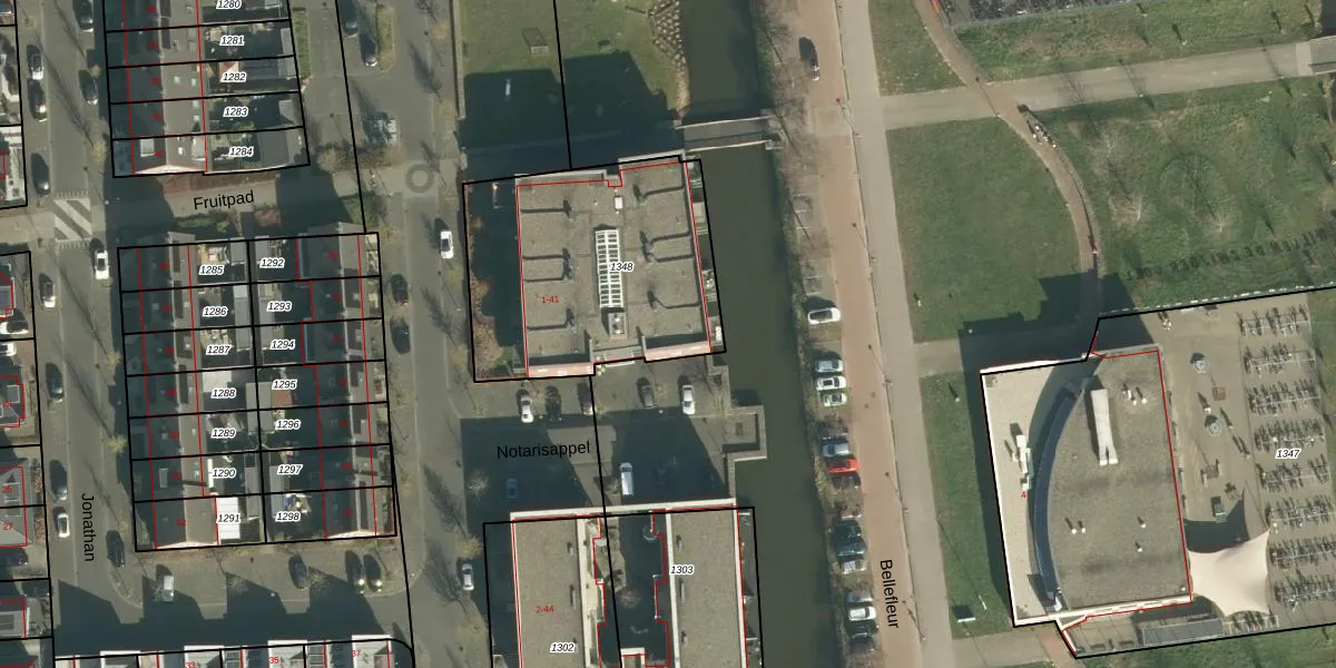 Het perceel waarop Notarisappel 15 staat heeft een oppervlakte van 1115 m². Dit is een zeer groot perceel. De perceeloppervlakte wordt geregistreerd door het Kadaster. Gedetailleerde informatie over de maten van dit perceel kunt u vinden in het rapport Kadastrale kaart met maatvoering van Notarisappel 15.