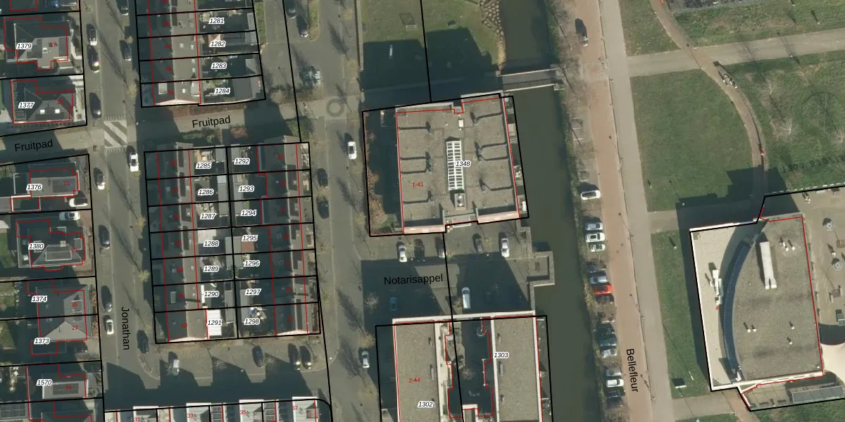 Het perceel waarop Notarisappel 27 staat heeft een oppervlakte van 1115 m². Dit is een zeer groot perceel. De perceeloppervlakte wordt geregistreerd door het Kadaster. Gedetailleerde informatie over de maten van dit perceel kunt u vinden in het rapport Kadastrale kaart met maatvoering van Notarisappel 27.