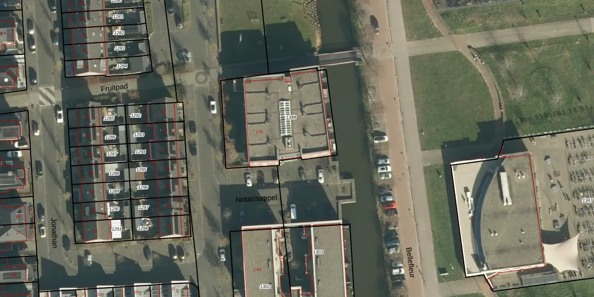 Het perceel waarop Notarisappel 29 staat heeft een oppervlakte van 1115 m². Dit is een zeer groot perceel. De perceeloppervlakte wordt geregistreerd door het Kadaster. Gedetailleerde informatie over de maten van dit perceel kunt u vinden in het rapport Kadastrale kaart met maatvoering van Notarisappel 29.