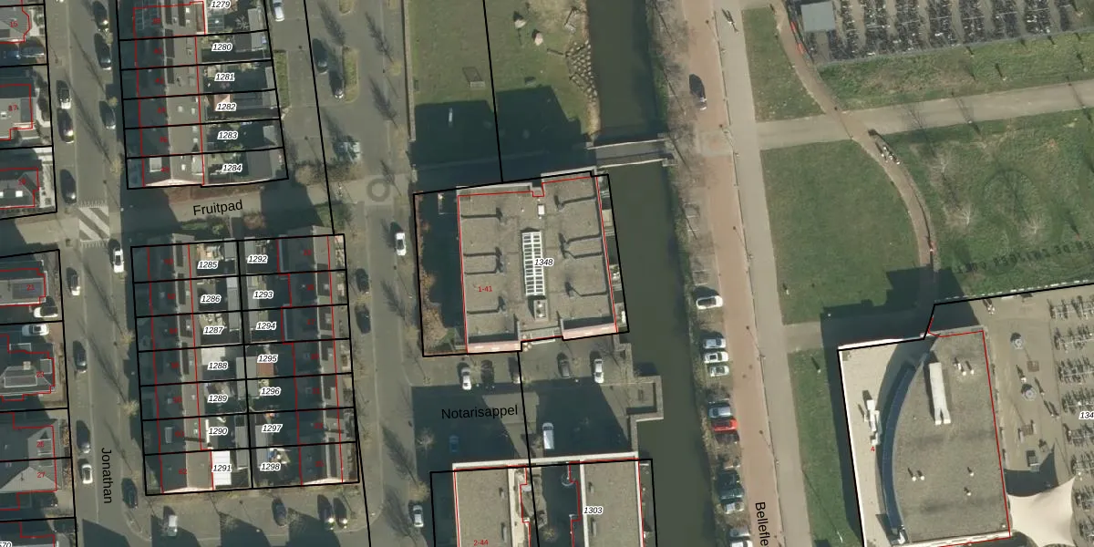 Het perceel waarop Notarisappel 31 staat heeft een oppervlakte van 1115 m². Dit is een zeer groot perceel. De perceeloppervlakte wordt geregistreerd door het Kadaster. Gedetailleerde informatie over de maten van dit perceel kunt u vinden in het rapport Kadastrale kaart met maatvoering van Notarisappel 31.