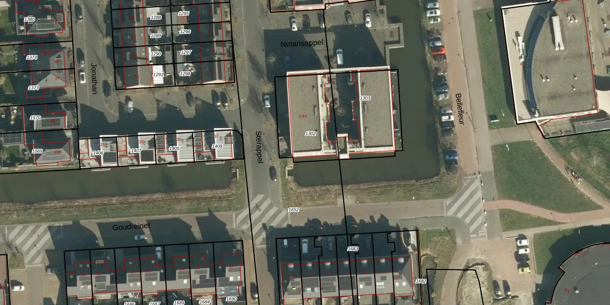 Het perceel waarop Notarisappel 36 staat heeft een oppervlakte van 527 m². Dit is een groot perceel. De perceeloppervlakte wordt geregistreerd door het Kadaster. Gedetailleerde informatie over de maten van dit perceel kunt u vinden in het rapport Kadastrale kaart met maatvoering van Notarisappel 36.