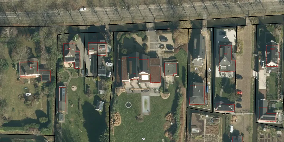 Gebruik de zoekbalk of klik op een perceel voor informatie over de adressen binnen dit perceel.