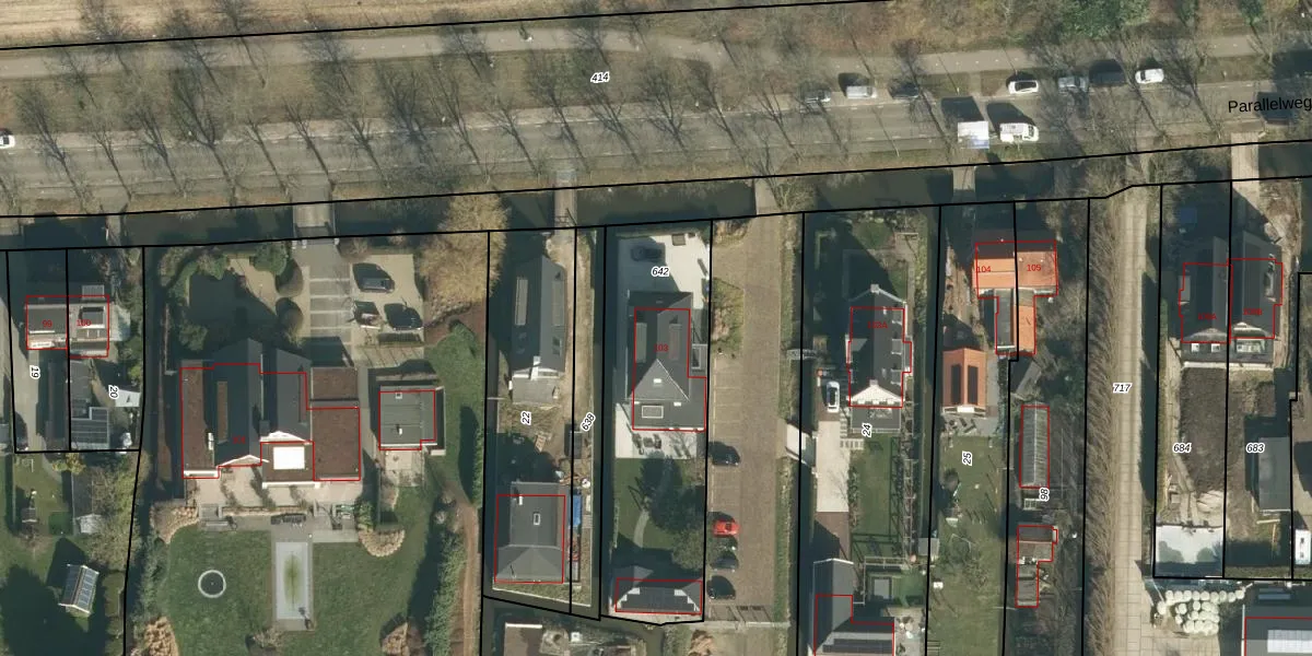 Het perceel waarop Parallelweg 103 staat heeft een oppervlakte van 974 m². Dit is een groot perceel. De perceeloppervlakte wordt geregistreerd door het Kadaster. Gedetailleerde informatie over de maten van dit perceel kunt u vinden in het rapport Kadastrale kaart met maatvoering van Parallelweg 103.