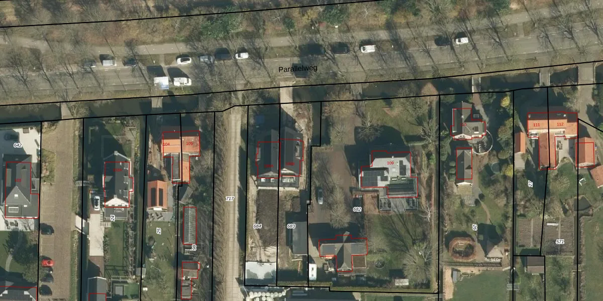 Parallelweg 109-B is gelegen op kadastraal perceel HDV00L683. Deze kadastrale aanduiding is uniek en wordt gebruikt door het Kadaster om eigendomsrechten en andere zakelijke rechten vast te leggen. Het perceel maakt onderdeel uit van de kadastrale gemeente Hardinxveld-Giessendam.