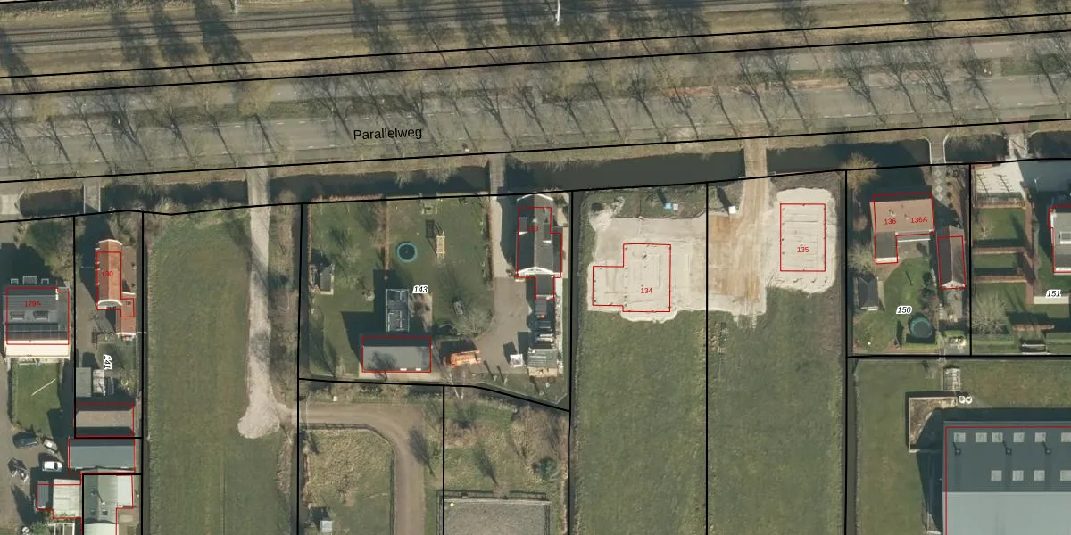 Parallelweg 133 is gelegen op kadastraal perceel HDV00L143. Deze kadastrale aanduiding is uniek en wordt gebruikt door het Kadaster om eigendomsrechten en andere zakelijke rechten vast te leggen. Het perceel maakt onderdeel uit van de kadastrale gemeente Hardinxveld-Giessendam.