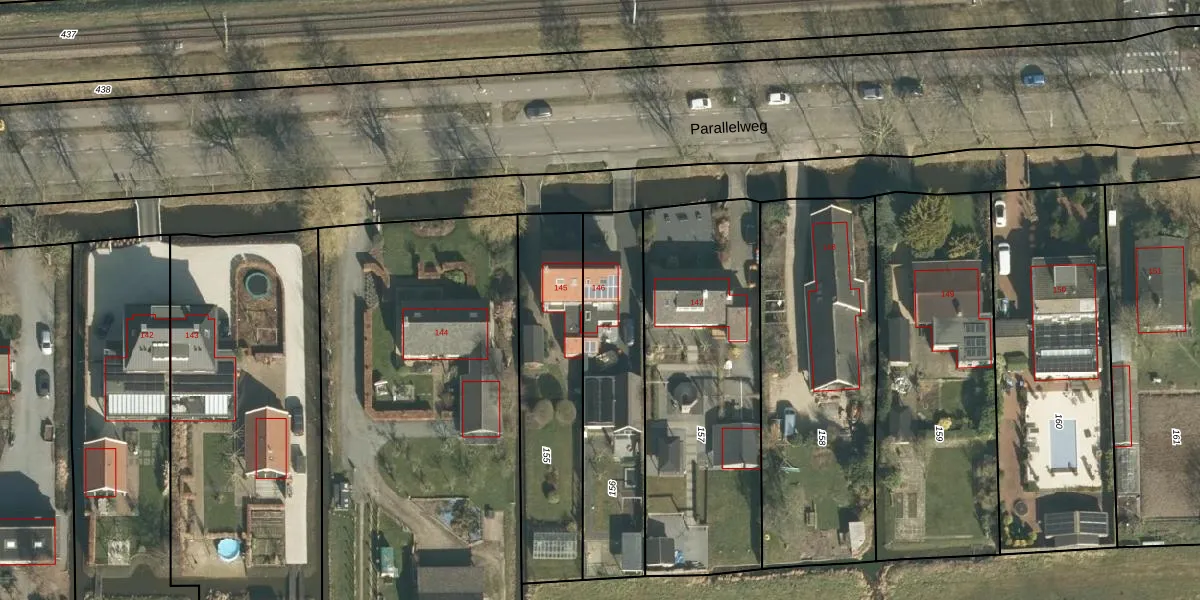 Parallelweg 146 is gelegen op kadastraal perceel HDV00L156. Deze kadastrale aanduiding is uniek en wordt gebruikt door het Kadaster om eigendomsrechten en andere zakelijke rechten vast te leggen. Het perceel maakt onderdeel uit van de kadastrale gemeente Hardinxveld-Giessendam.