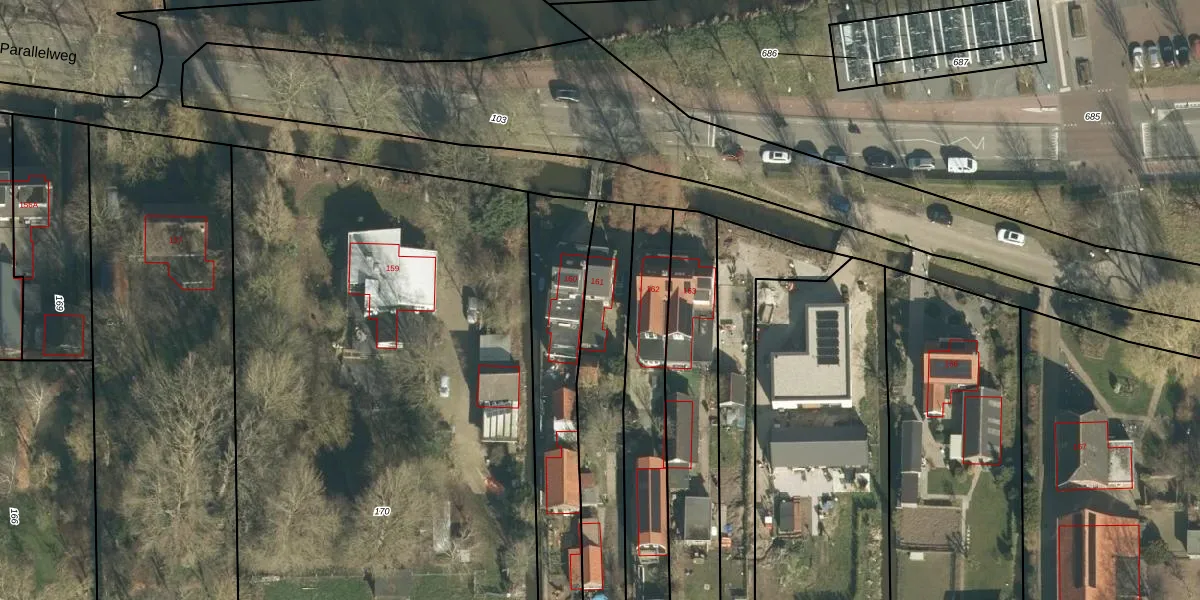 Parallelweg 161 is gelegen op kadastraal perceel HDV00L173. Deze kadastrale aanduiding is uniek en wordt gebruikt door het Kadaster om eigendomsrechten en andere zakelijke rechten vast te leggen. Het perceel maakt onderdeel uit van de kadastrale gemeente Hardinxveld-Giessendam.