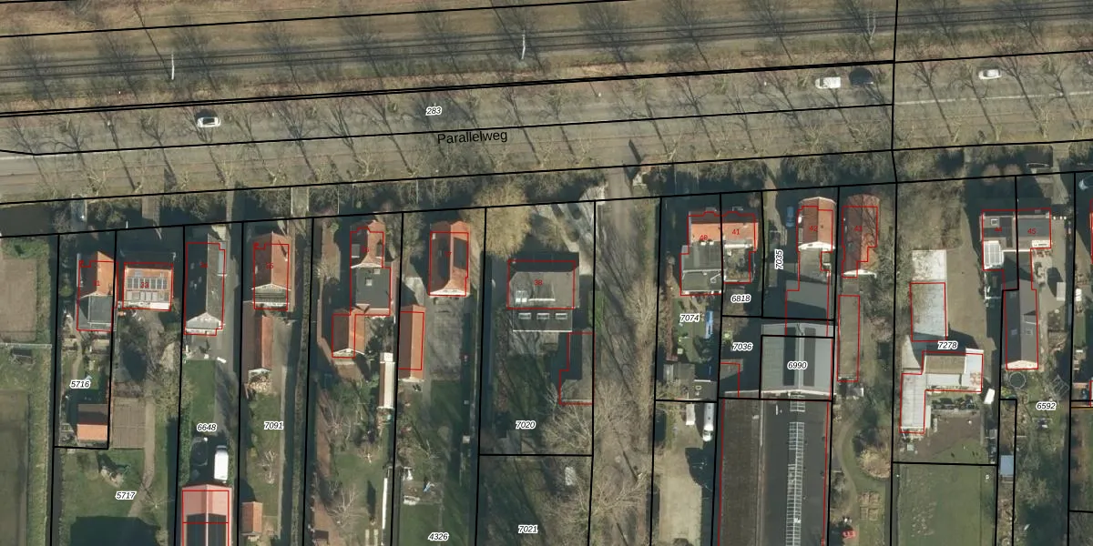 Het perceel waarop Parallelweg 38 staat heeft een oppervlakte van 915 m². Dit is een groot perceel. De perceeloppervlakte wordt geregistreerd door het Kadaster. Gedetailleerde informatie over de maten van dit perceel kunt u vinden in het rapport Kadastrale kaart met maatvoering van Parallelweg 38.