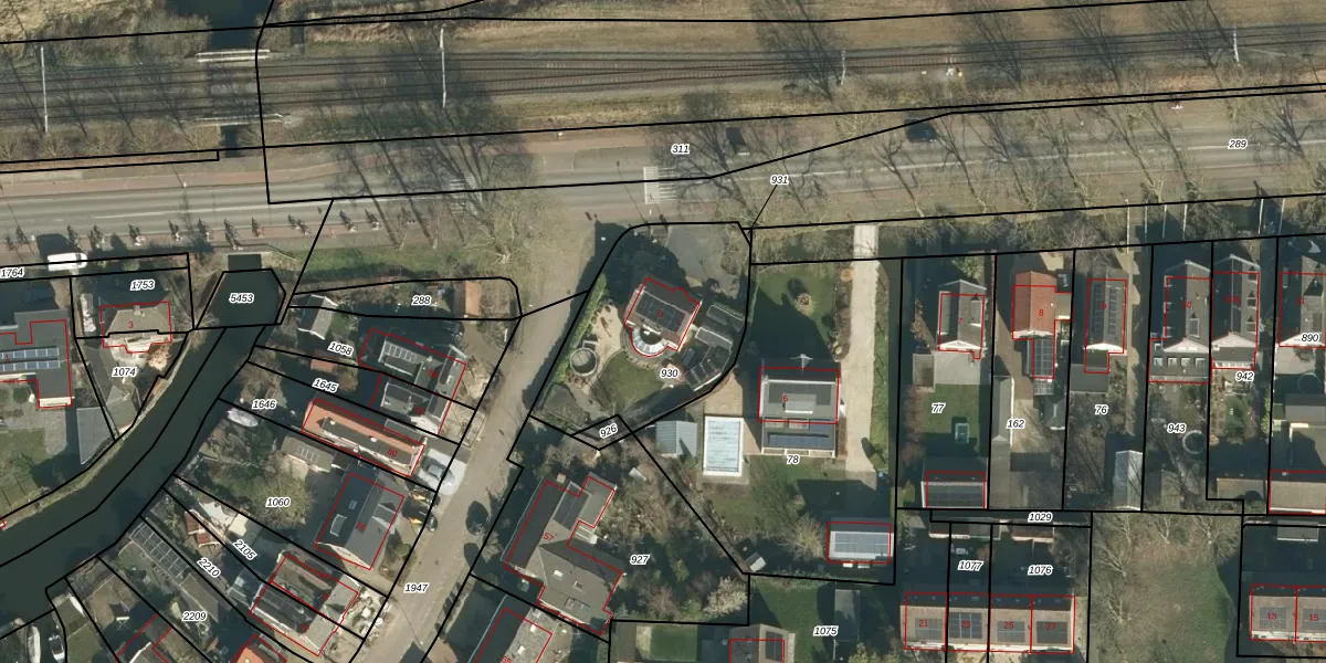 Gebruik de zoekbalk of klik op een perceel voor informatie over de adressen binnen dit perceel.