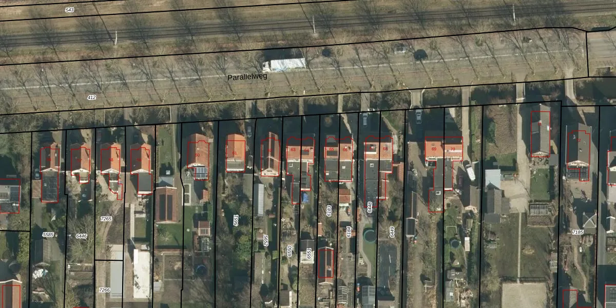 Parallelweg 64 is gelegen op kadastraal perceel HDV00B6551. Deze kadastrale aanduiding is uniek en wordt gebruikt door het Kadaster om eigendomsrechten en andere zakelijke rechten vast te leggen. Het perceel maakt onderdeel uit van de kadastrale gemeente Hardinxveld-Giessendam.