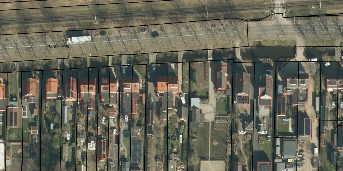 Parallelweg 70 is gelegen op kadastraal perceel HDV00B6197. Deze kadastrale aanduiding is uniek en wordt gebruikt door het Kadaster om eigendomsrechten en andere zakelijke rechten vast te leggen. Het perceel maakt onderdeel uit van de kadastrale gemeente Hardinxveld-Giessendam.