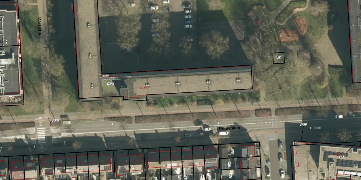 Het perceel waarop Peulenlaan 86 staat heeft een oppervlakte van 2036 m². Dit is een zeer groot perceel. De perceeloppervlakte wordt geregistreerd door het Kadaster. Gedetailleerde informatie over de maten van dit perceel kunt u vinden in het rapport Kadastrale kaart met maatvoering van Peulenlaan 86.