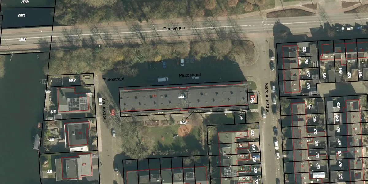 Het perceel waarop Plutostraat 2 staat heeft een oppervlakte van 910 m². Dit is een groot perceel. De perceeloppervlakte wordt geregistreerd door het Kadaster. Gedetailleerde informatie over de maten van dit perceel kunt u vinden in het rapport Kadastrale kaart met maatvoering van Plutostraat 2.
