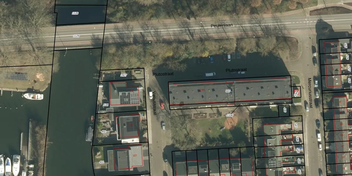 Het perceel waarop Plutostraat 48 staat heeft een oppervlakte van 910 m². Dit is een groot perceel. De perceeloppervlakte wordt geregistreerd door het Kadaster. Gedetailleerde informatie over de maten van dit perceel kunt u vinden in het rapport Kadastrale kaart met maatvoering van Plutostraat 48.