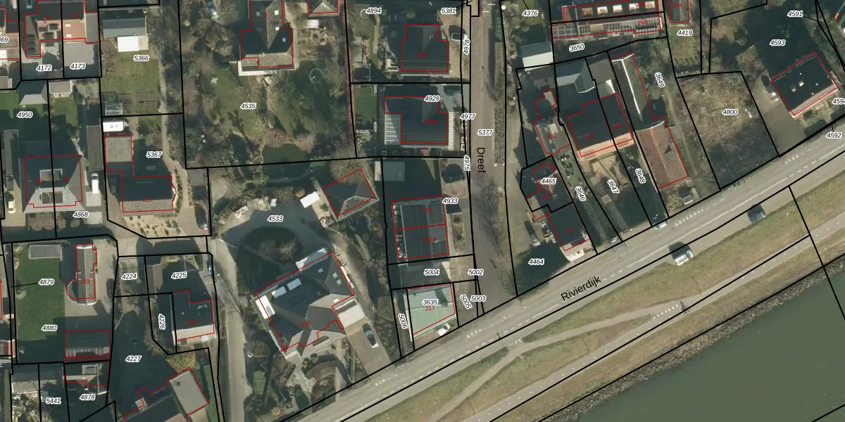 Het perceel waarop Rivierdijk 216 staat heeft een oppervlakte van 495 m². Dit is een groot perceel. De perceeloppervlakte wordt geregistreerd door het Kadaster. Gedetailleerde informatie over de maten van dit perceel kunt u vinden in het rapport Kadastrale kaart met maatvoering van Rivierdijk 216.